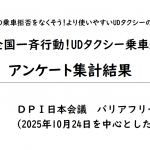 - 全国のみなさん 10月の全国一斉行動!UDタクシー乗車運動にご協力いただきありがとうございました。 調査結果がまとまりましたのでご報告します。 ▽アンケート集計結果 2025全国一斉行動!UDタクシー乗車運動(PDF) ... 続きを読む