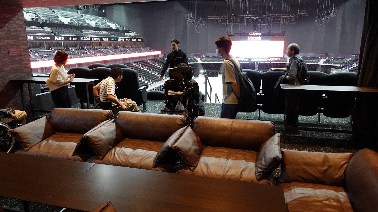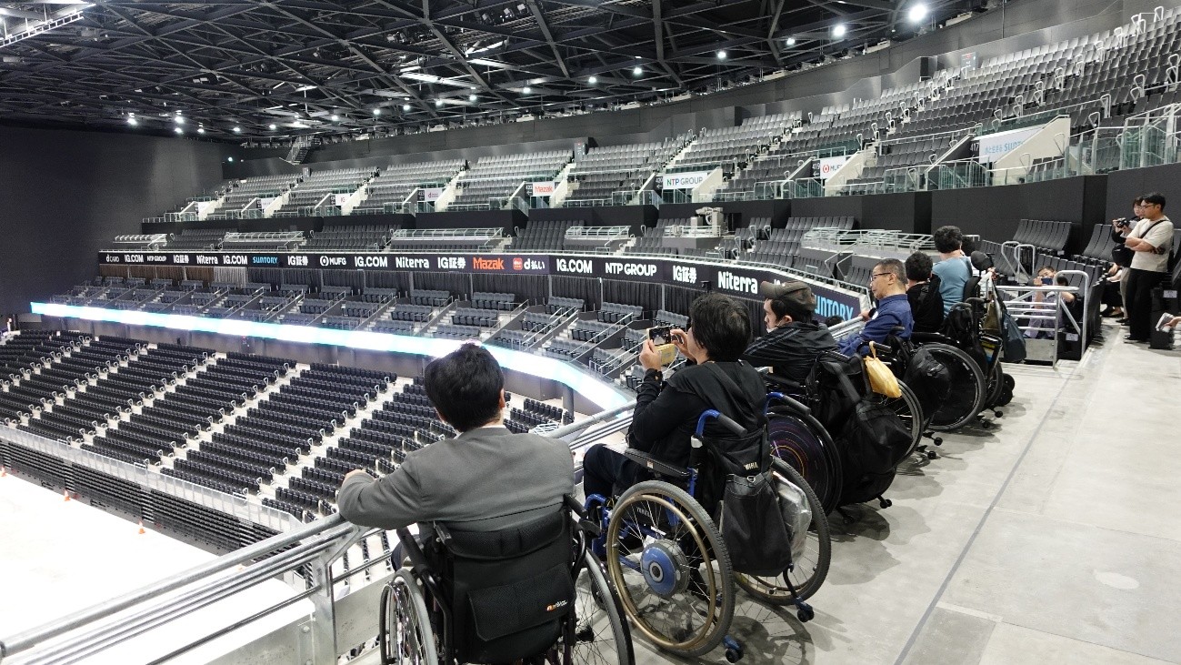 午後は3グループに分かれてIGアリーナを約二時間かけて視察しました。車椅子ユーザーのために客席を取り外せるVIPルームの見学等、国内最大級のアリーナをじっくりと視察させていただきました。