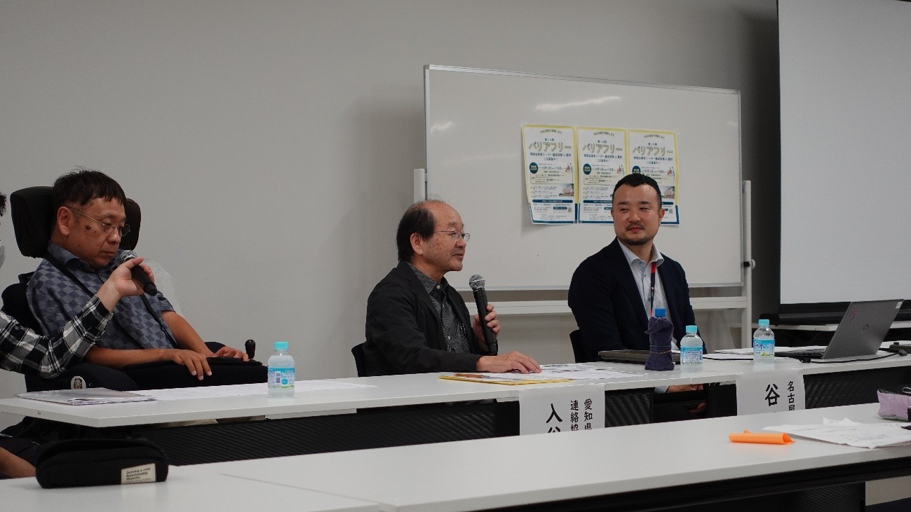 愛知・名古屋アジア・アジアパラ競技大会組織委員会 五十川有希子氏に大会の取り組みについて、名古屋市会議員 成田たかゆき氏、名古屋市健康福祉局担当局長(地域共生社会推進)田嶌仁美氏からは当事者からの行政・事業者への働きかけ実績について、お話をしていただきました。最後にグループワークも行い、地元のマスタープラン等のBF計画の共有をしました。